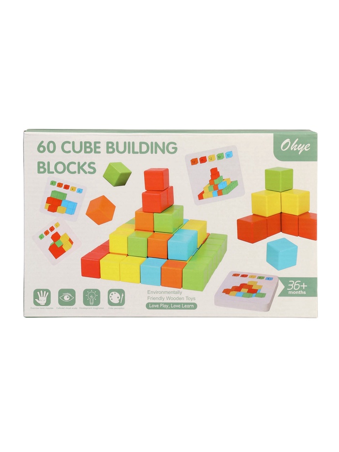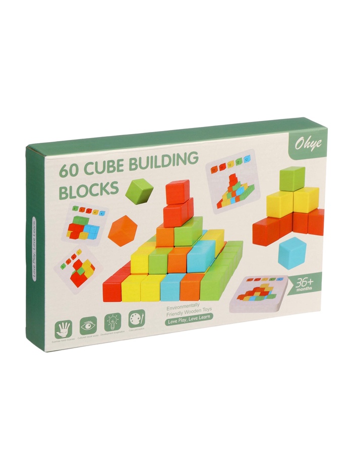 Детский набор деревянные кубики, цветные, 60 штук — Характеристики
