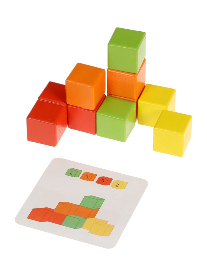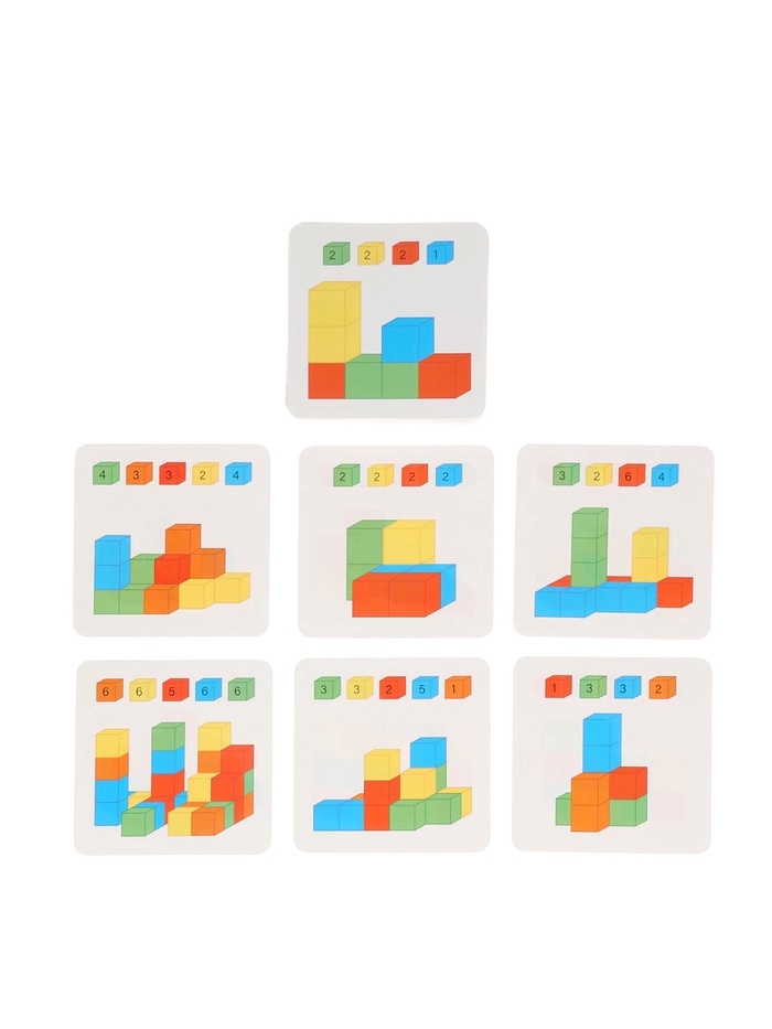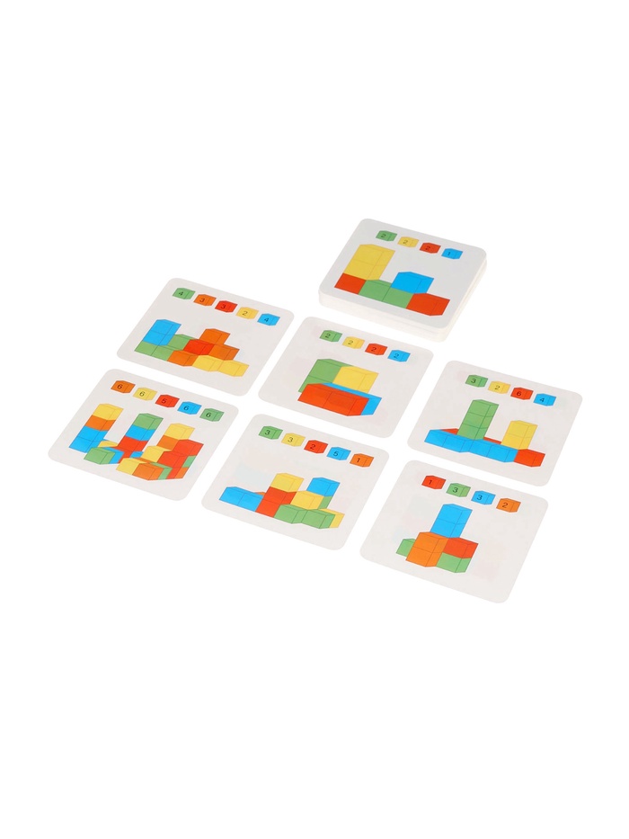 - Наглядное обучение: с помощью карточек ребёнок повторяет предложенные фигуры и учится собирать собственные конструкции.