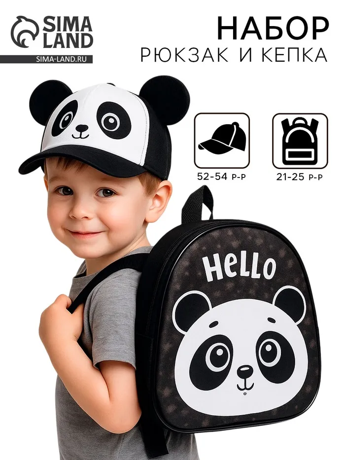 Детский набор «Панда», рюкзак, кепка, р-р. 52-54 см — Характеристики