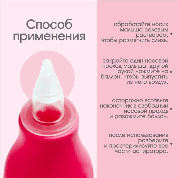 Детский назальный аспиратор, с колпачком, розовый «Груша» — Характеристики