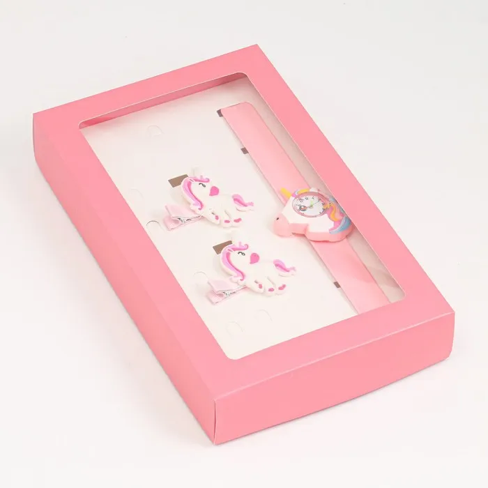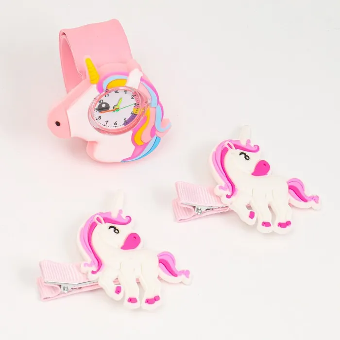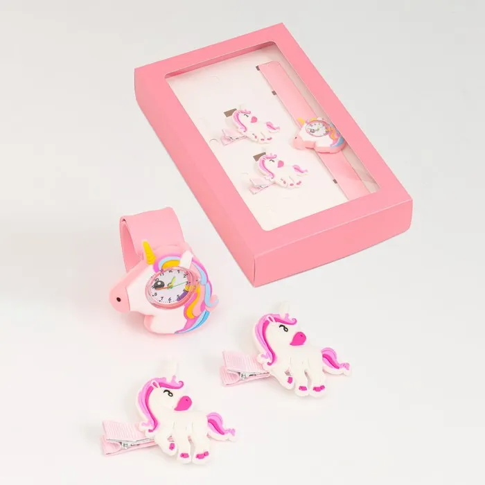 Детский подарочный набор для девочек "Единороги" 3 в 1: наручные часы, 2 невидимки — Характеристики