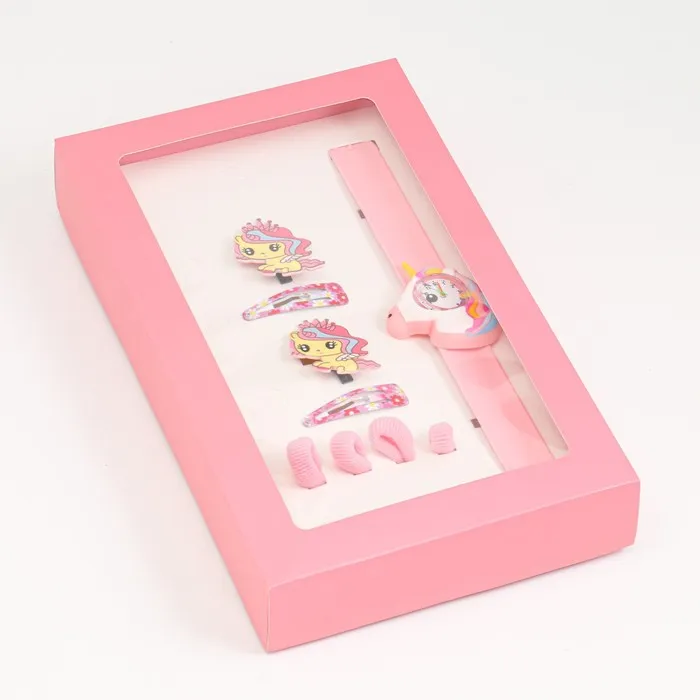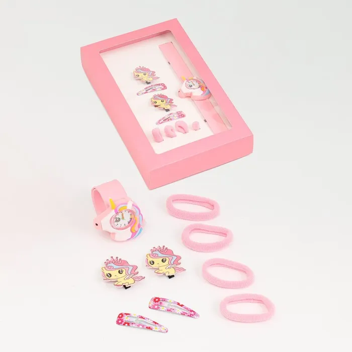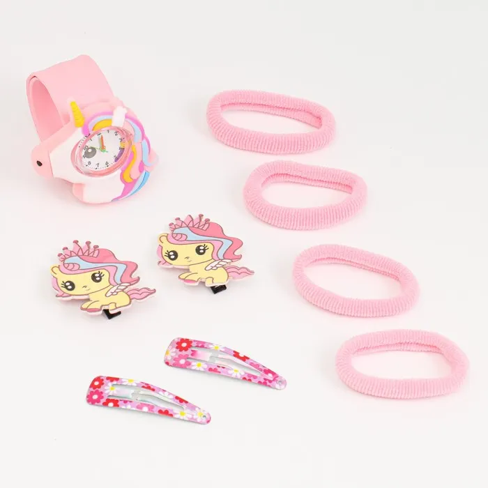Детский подарочный набор для девочек "Пони" 9 в 1: наручные часы, 4 резинки, 2 зажима, 2 невидимки 7 — Характеристики