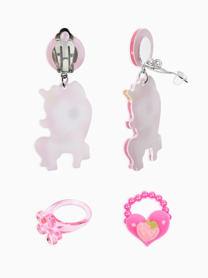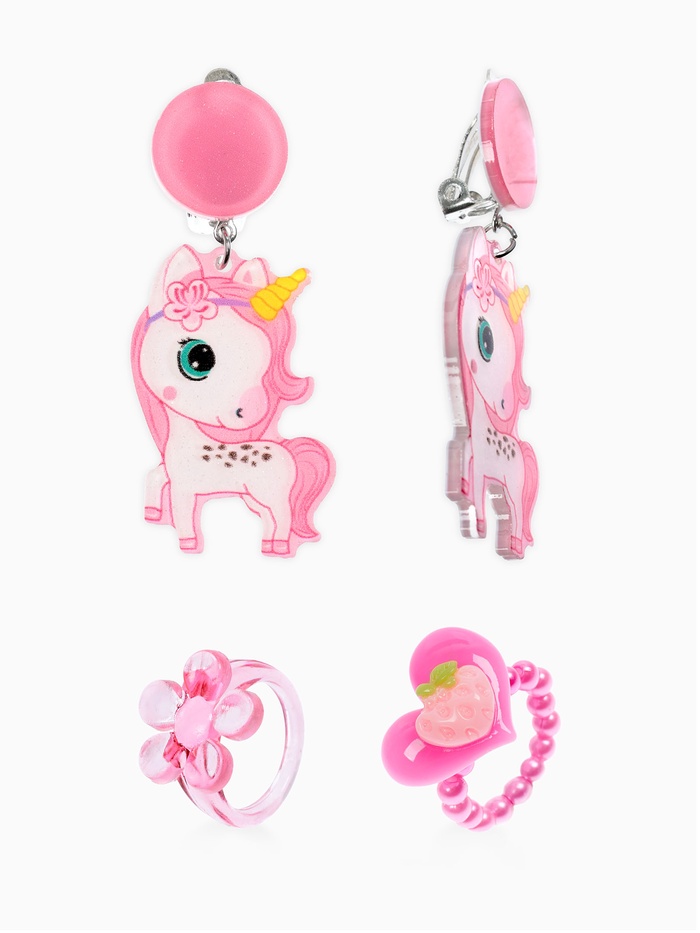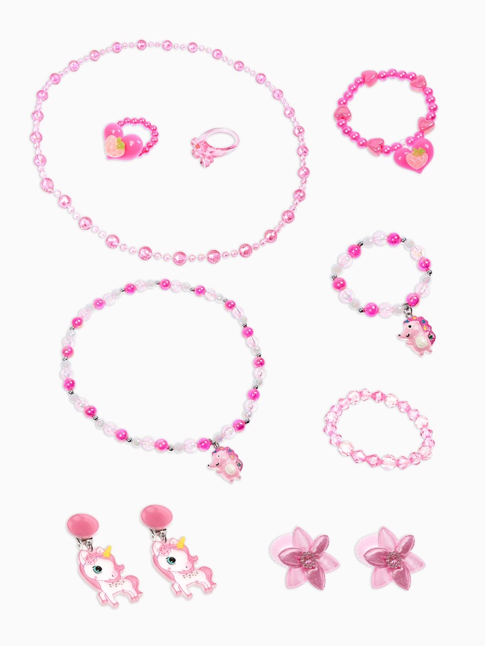 Детский подарочный набор «Выбражулька. Влюблённый единорог», 10 предметов: кольца, бусы, браслеты, клипсы, резинки, розовый — Характеристики