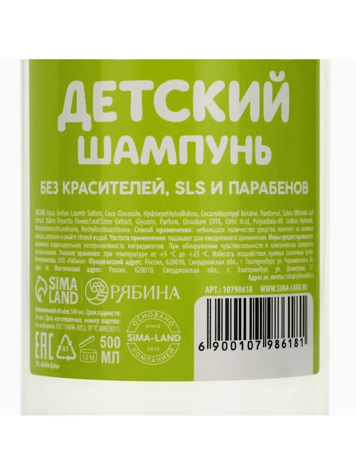 Детский шампунь для волос без слёз, 500 мл, с экстрактами череды, 0+, Беби Буль — Характеристики