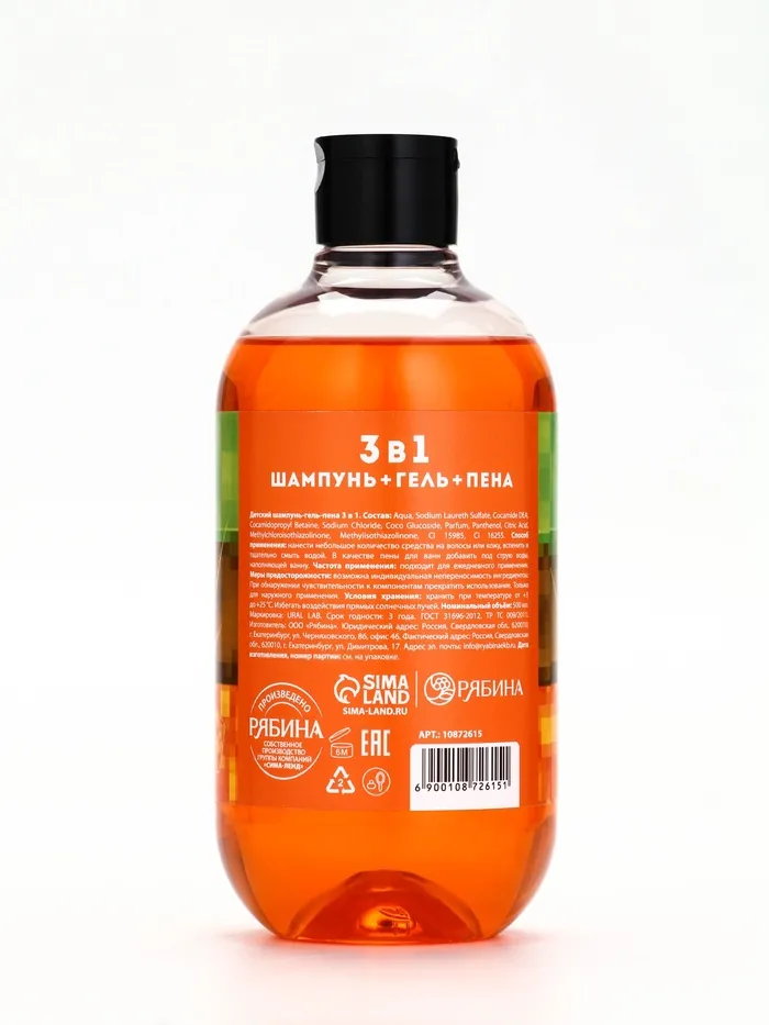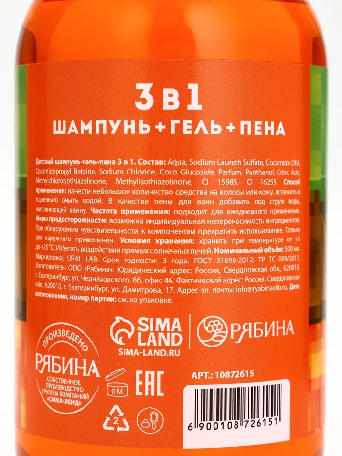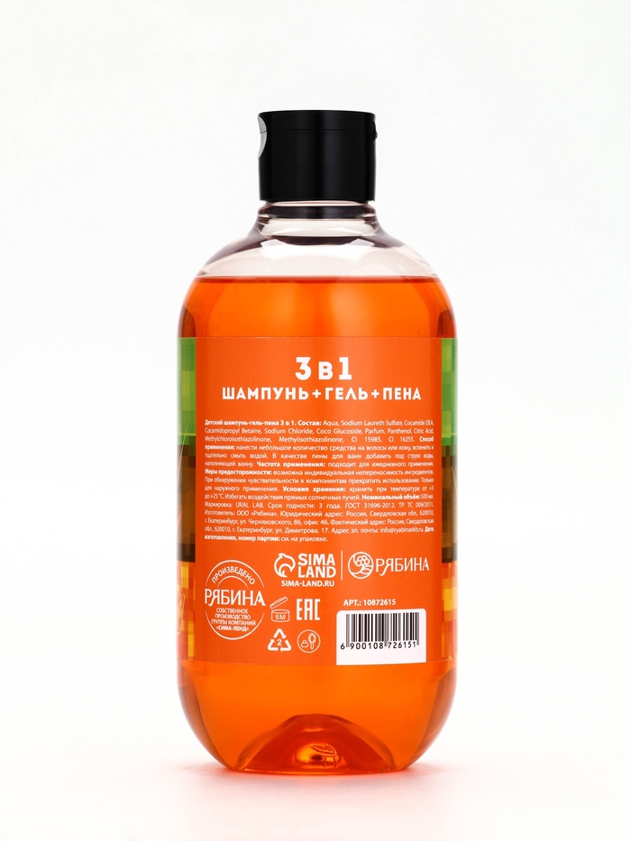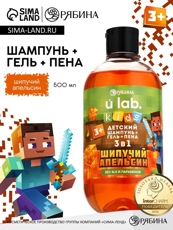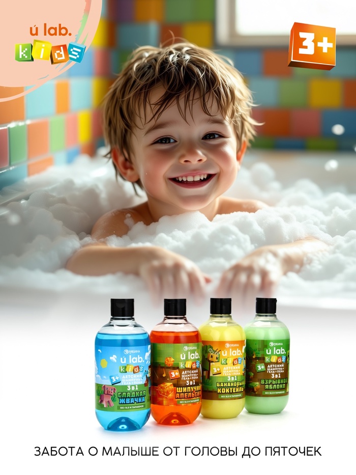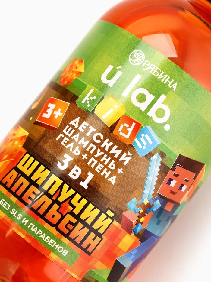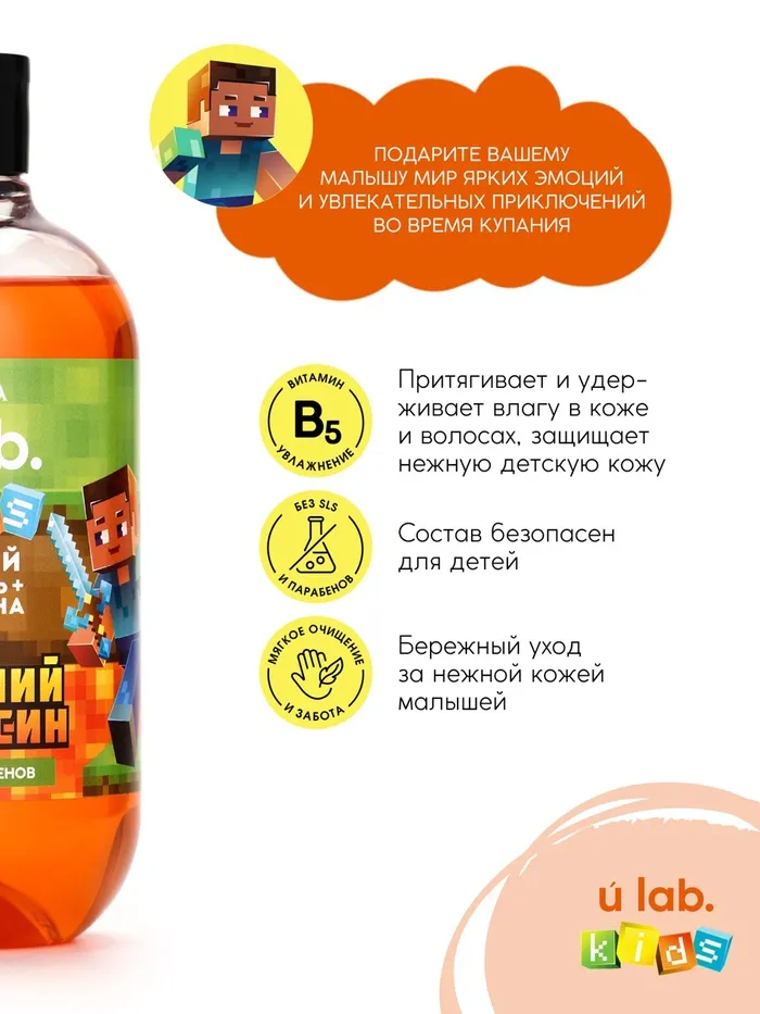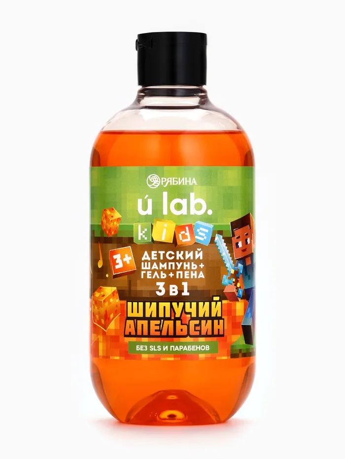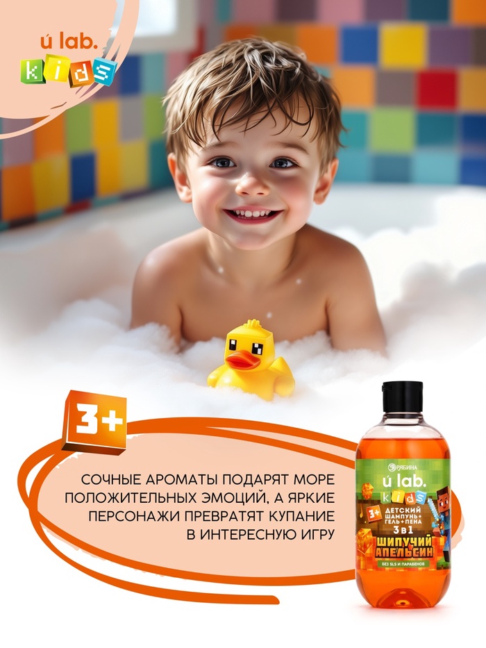 Детский шампунь-гель-пена 3в1, 500 мл, аромат шипучий апельсин, U LAB — Характеристики