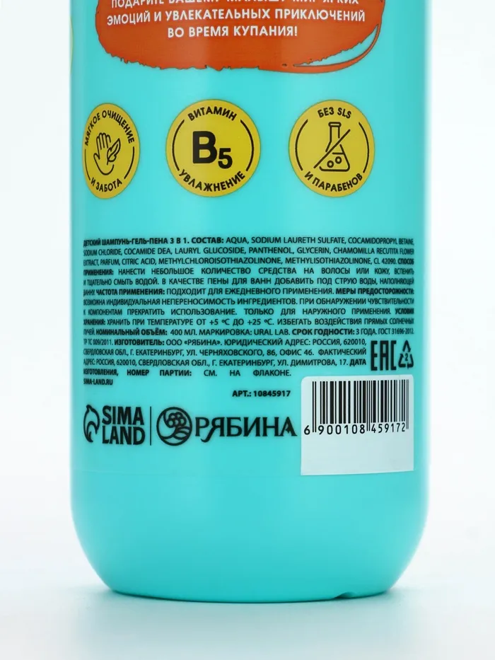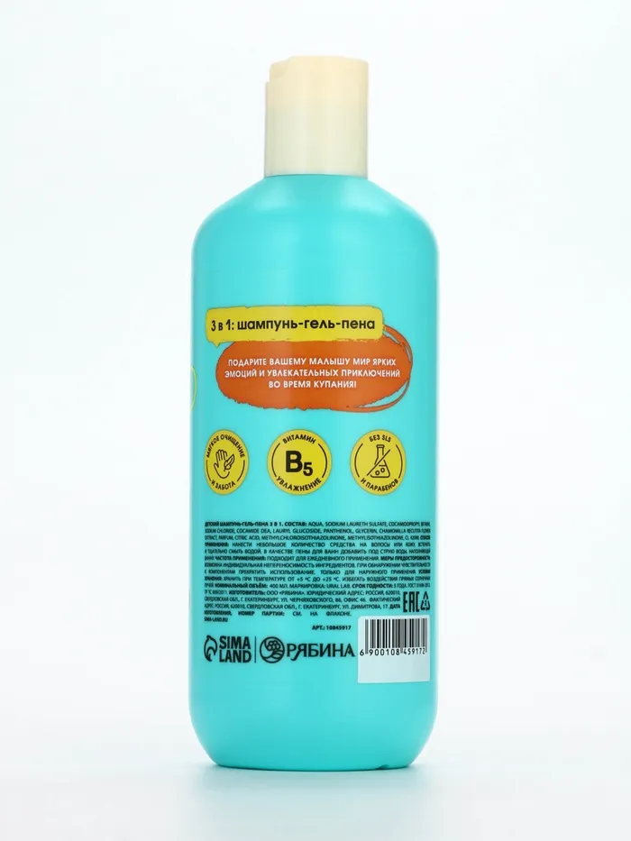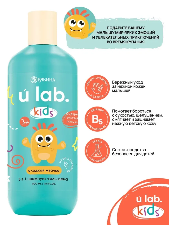 Детский шампунь-гель-пена 3в1 «Монстрики», 400 мл, аромат сладкая жвачка, ULAB — Характеристики