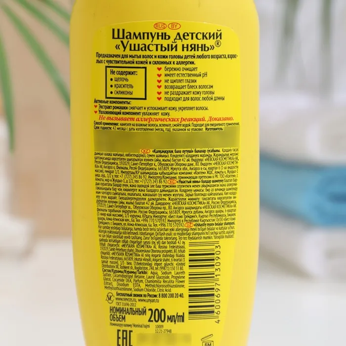 Вода, лауретсульфат натрия, кокамидопропилбетаин, лаурилглюкозид, пропиленгликоль, кокамид ДЭА, отдушка, экстракт ромашки, динатриевая соль ЭДТА, консервант, хлорид натрия, лимонная кислота.