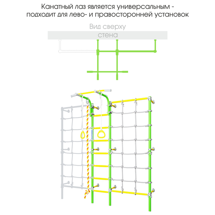 Детский спортивный комплекс ROMANA S3 состоит из шведской стенки и веревочного лаза, которые фиксируются у стены на оригинальные подвижные крепежи. Благодаря этому комплекс можно закрепить у любой свободной стены, не боясь попасть в полость или проводку.