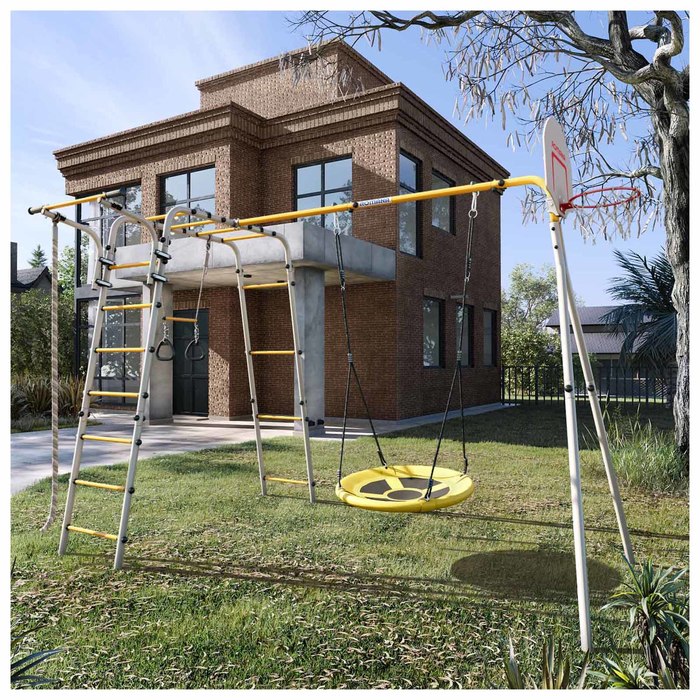 Спортивный комплекс подходит для установки на улице, например, на дачном участке. Разработан специально для детей от 3 лет. С помощью него дети развивают координацию, ловкость и силу, а также могут просто весело проводить время на свежем воздухе.