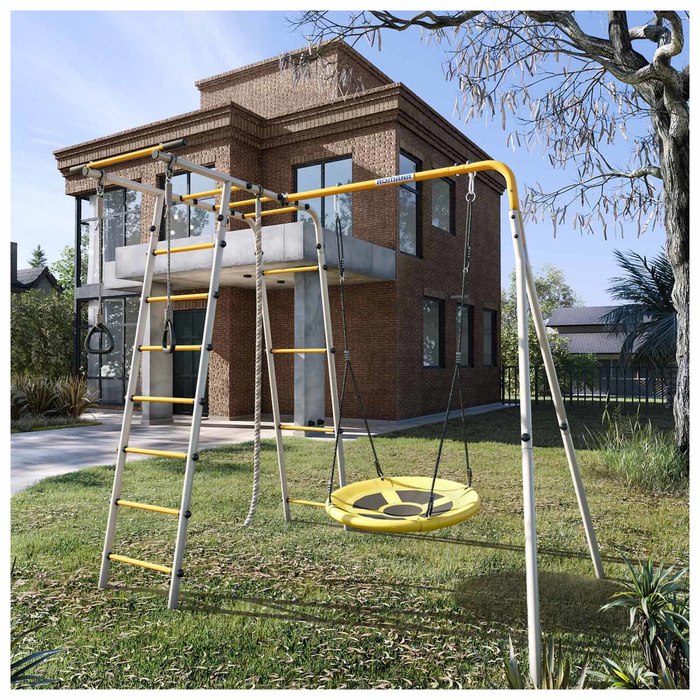 Всё навесное оборудование выполнено из атмосферостойких материалов — в летнее время их можно не убирать в дом после занятий.