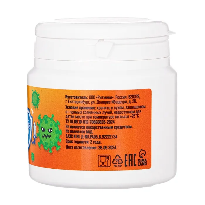 Vitamuno «Осень-весна» содержит сбалансированный набор витаминов и минералов, необходимых для нормального роста и развития детского организма. Витамин С способствует укреплению иммунитета и защите от простудных заболеваний, а также участвует в синтезе коллагена и поддерживает здоровье кожи, волос и ногтей. Витамин D помогает усвоению кальция и фосфора, необходимых для формирования костной ткани и зубов.