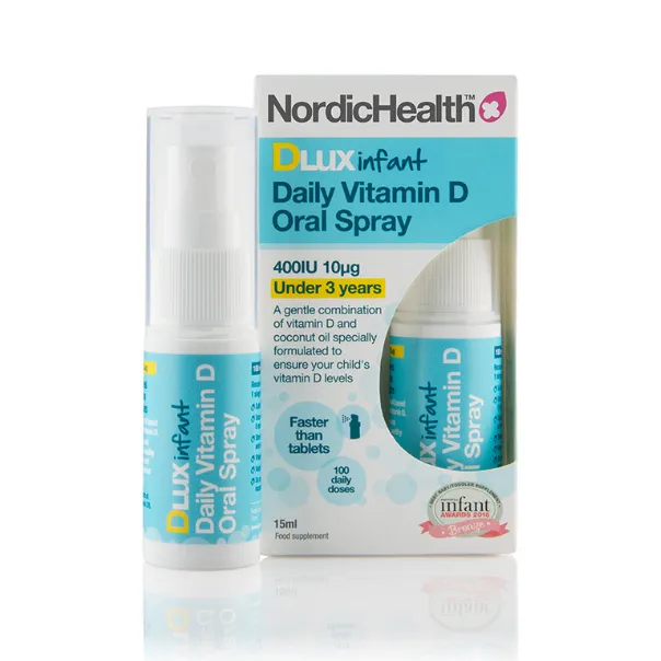 Nordic Health DLux Vauva оральный спрей с витамином D для младенцев и детей младшего возраста. Продукт безвреден для желудка, не вызывает колик. Не содержит искусственных добавок. Легко использовать. Вы получаете 100 доз из флакона. Биологически активная добавка.