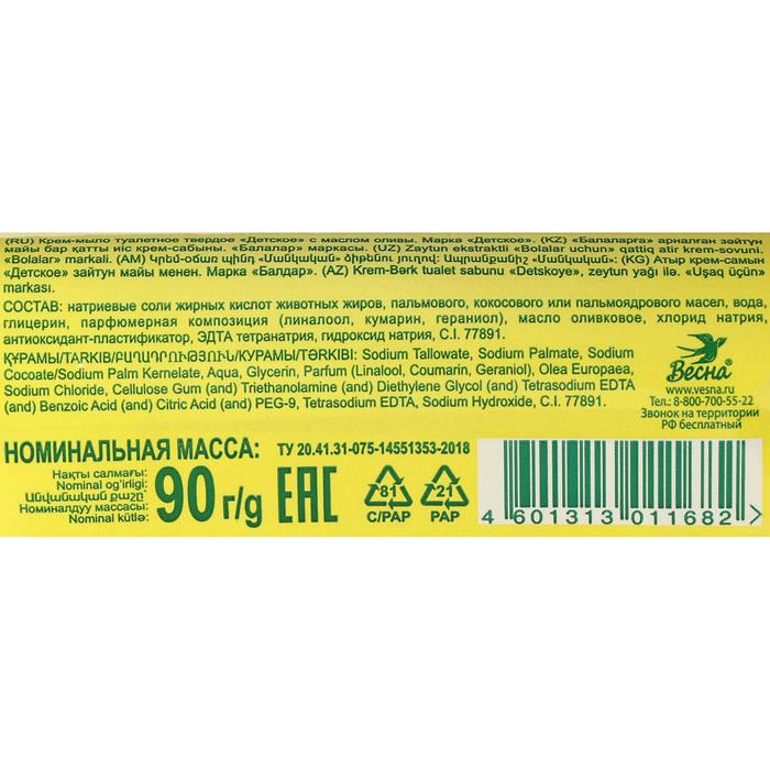 Детское крем-мыло с маслом оливы, 90 г — Характеристики