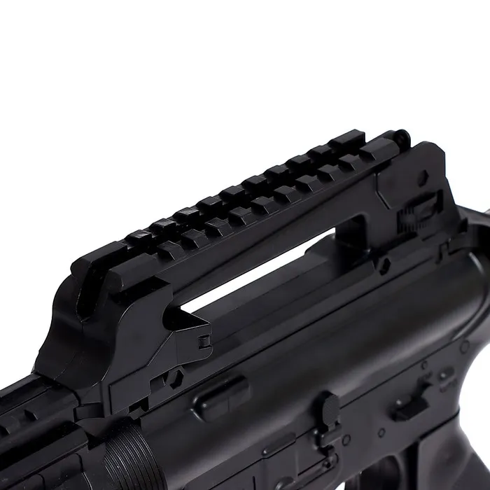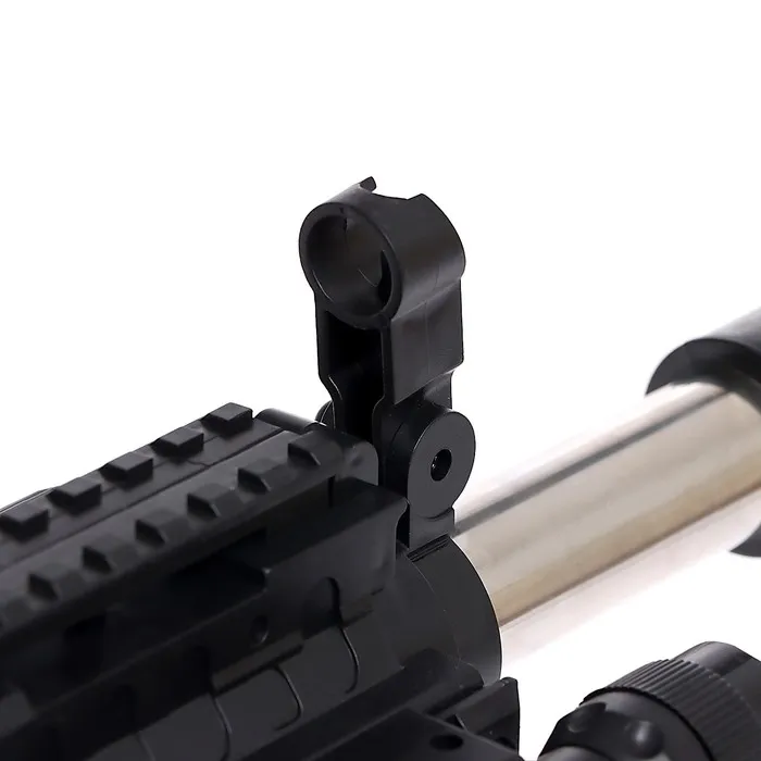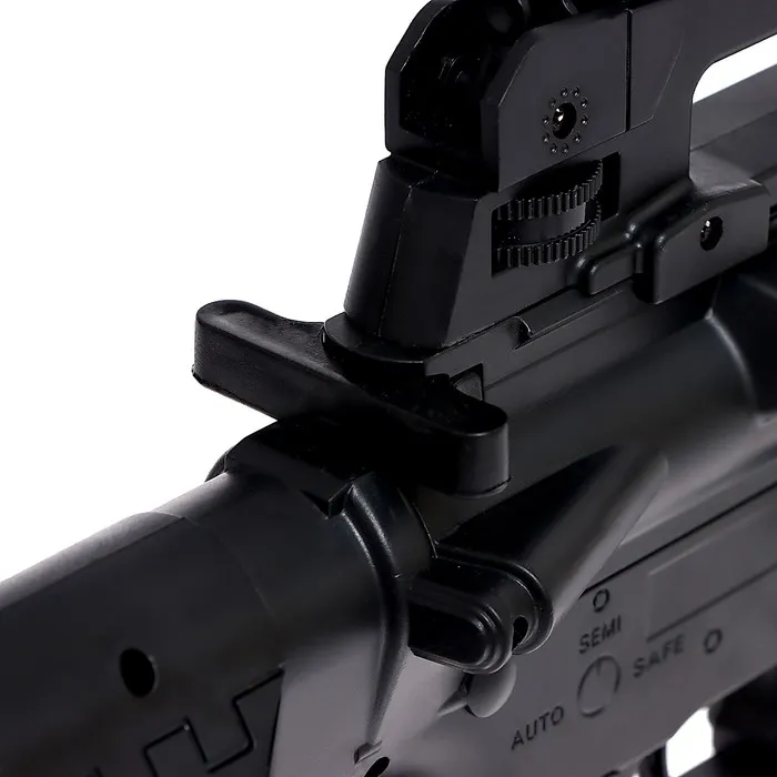 - Механический взвод: чтобы начать игру, заряди пульки в магазин и взведи оружие одним из двух способов: ручкой сзади над прикладом или боковой ручкой. Простой механизм делает процесс игры ещё увлекательнее.