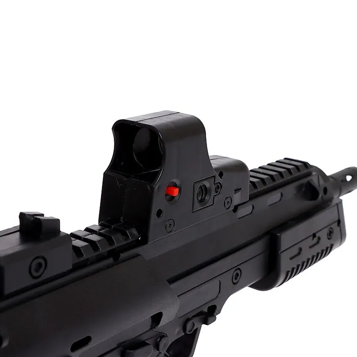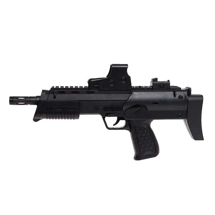 Пистолет-пулемёт МП7 был создан немецкой фирмой Heckler & Koch в 2001 году. Отличается высокой точностью для оружия своего типа, а благодаря компактности и лёгкости из него можно вести стрельбу даже с одной руки. Пневматическая модель оружия полностью повторяет внешний вид своего прототипа, а лазерный прицел сделает стрельбу более точной.