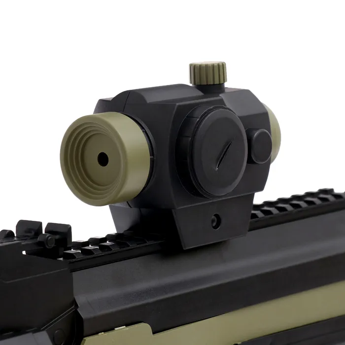 - Игрушка оснащена лазерным прицелом, работает от 2 батареек LR44 (есть в комплекте).