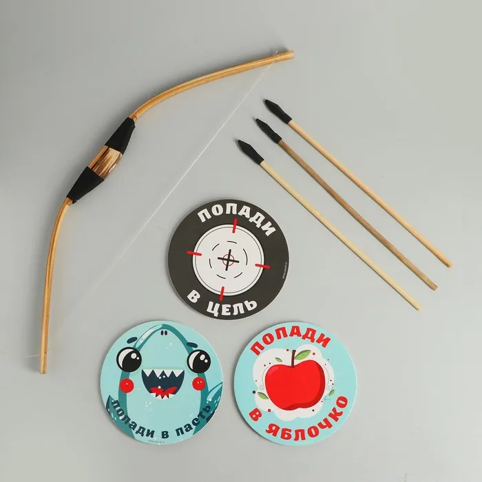 Детское оружие «Лук», деревянный 50 см, 3 стрелы, резиновые наконечники, 3 мишени — Характеристики