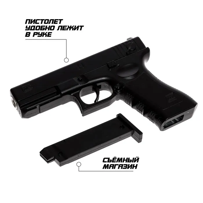 - Впечатляющая дальность: пистолет способен стрелять на расстояние до 20 метров, что позволяет использовать его как дома, так и на открытом воздухе. Точность и контроль каждого выстрела помогают развивать навыки меткости.