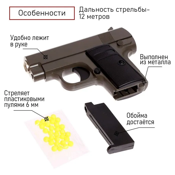 Детское оружие Пистолет пневматический детский «Защитник», металлический — Характеристики
