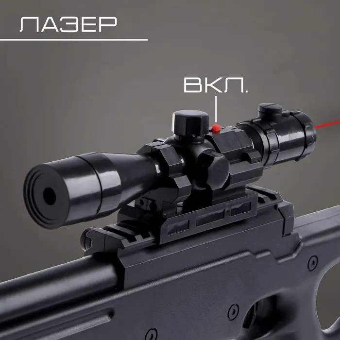 - Винтовка оснащена лазером, который включается переключателем сверху.