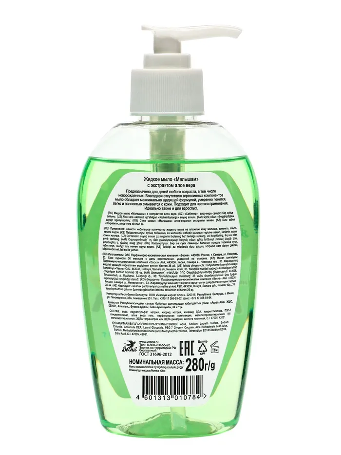 Предназначено для детей любого возраста, в том числе новорожденных. Благодаря отсутствию агрессивных компонентов мыло обладает максимально щадящей формулой, умеренно пенится, легко и полностью смывается с кожи. Подходит для частого применения.