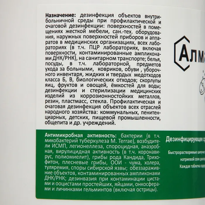 - Является наиболее экономичным средством для дезинфекции. Достаточно растворить одну таблетку «Алмадез-Хлор» в 10 л воды.