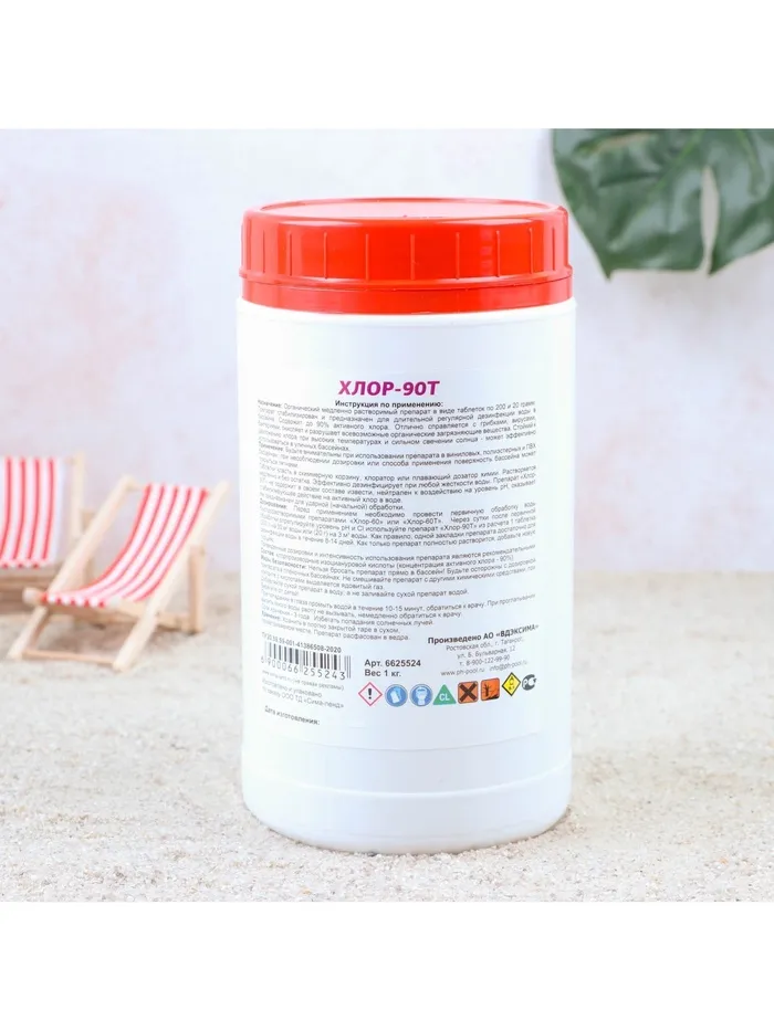 Состав: хлорпроизводные изоциануровой кислоты (концентрация активного хлора — 90 %).