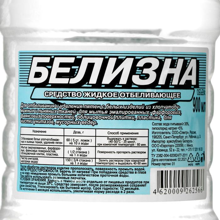 Средство жидкое отбеливающее. Для удаления и отбеливания пятен с белых изделий и хлопчатобумажных и льняных тканей, для мытья эмалированных, фарфоровых, фаянсовых поверхностей, облицовочной плитки, пластика, для чистки унитаза, мусорных ведер.