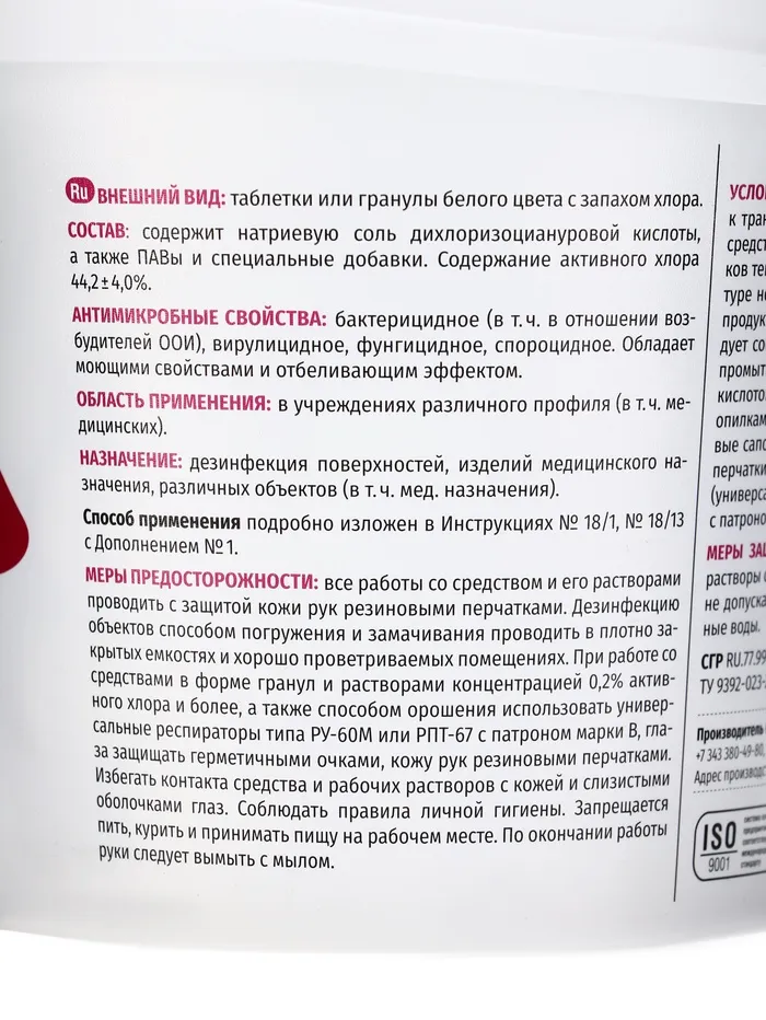 Дезинфицирующее средство «Део-Хлор Люкс», с моющим эффектом, 300 таблеток, 1 кг — Характеристики