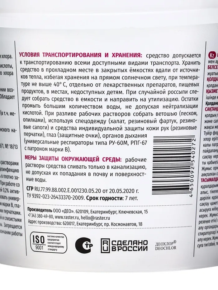 Свойства «Део-Хлор»:
