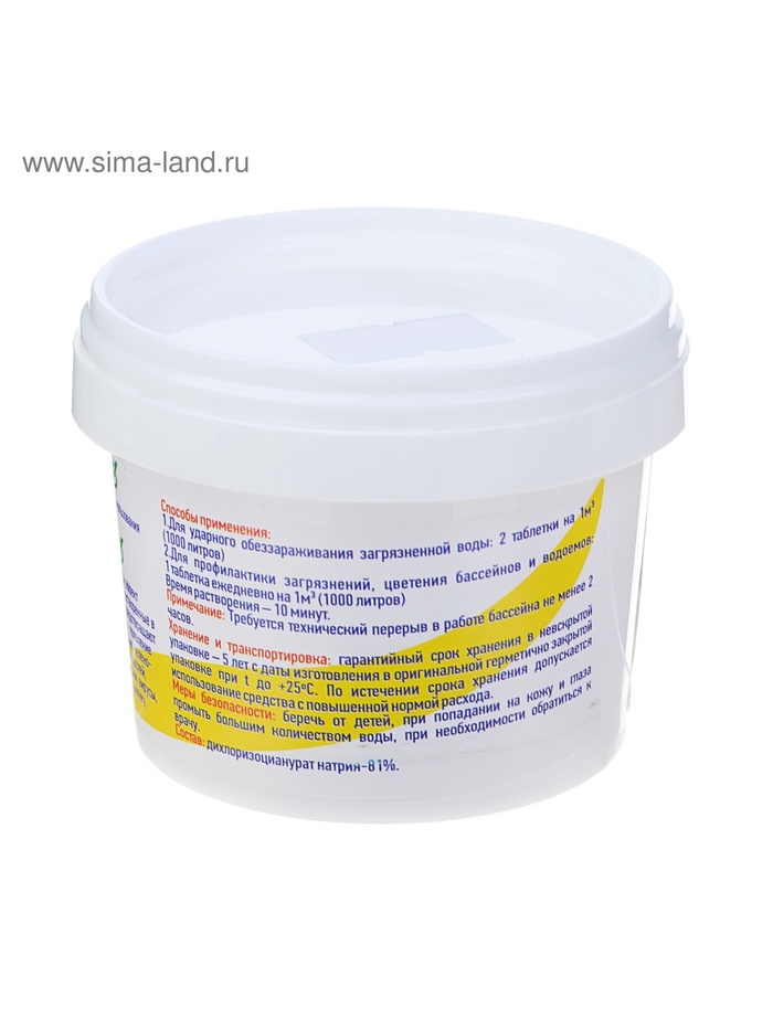 Состав: дихлоризоцианурат натрия 81%.