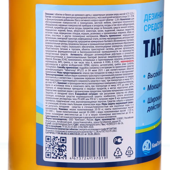 Таблетки дезинфицирующие хлорные «Таблетхлор» имеют ряд преимуществ перед аналогами: