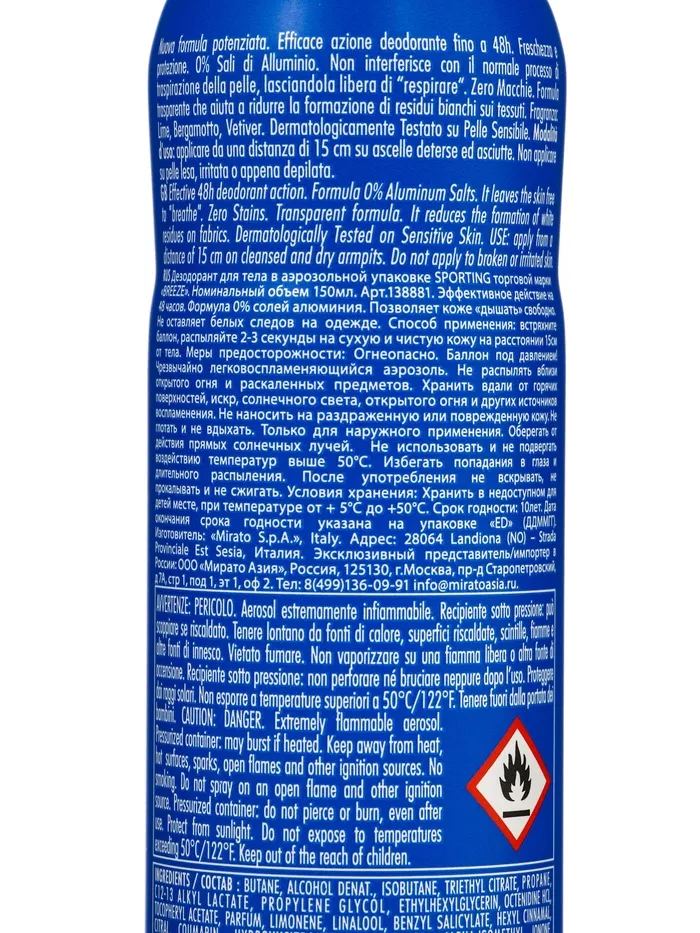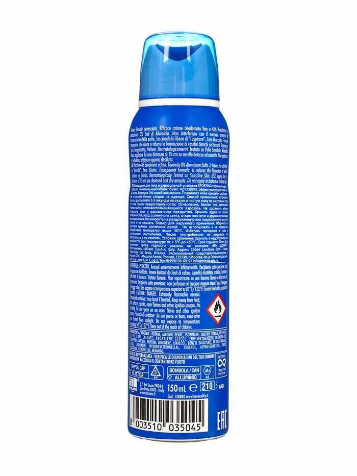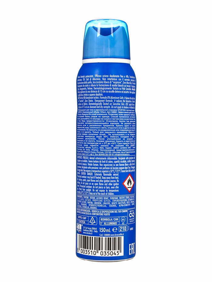 Дезодорант aэрозоль BREEZE SPORTING, длительная защита, 150 мл — Характеристики