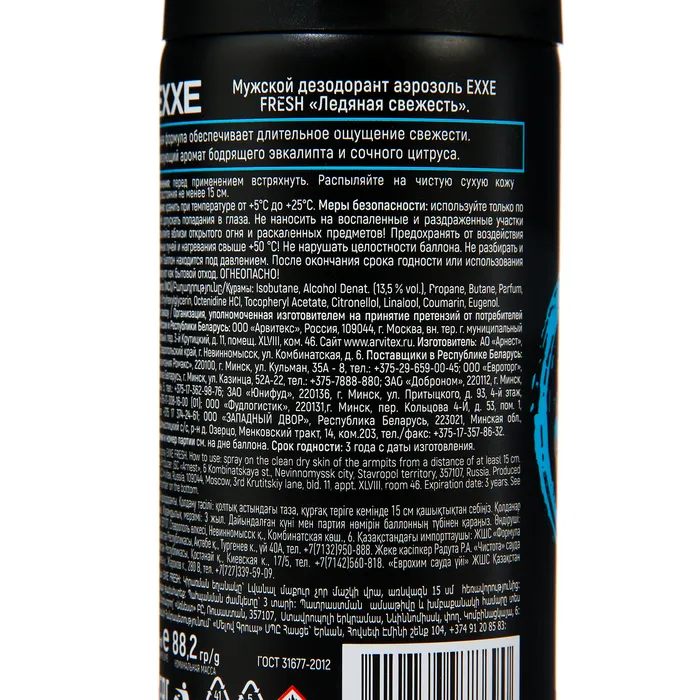 Дезодорант - аэрозоль EXXE FRESH мужской, 150 мл — Характеристики