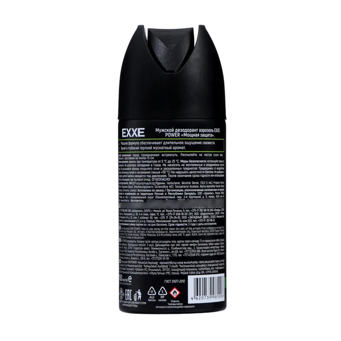 Дезодорант - аэрозоль EXXE POWER мужской, 150 мл — Характеристики