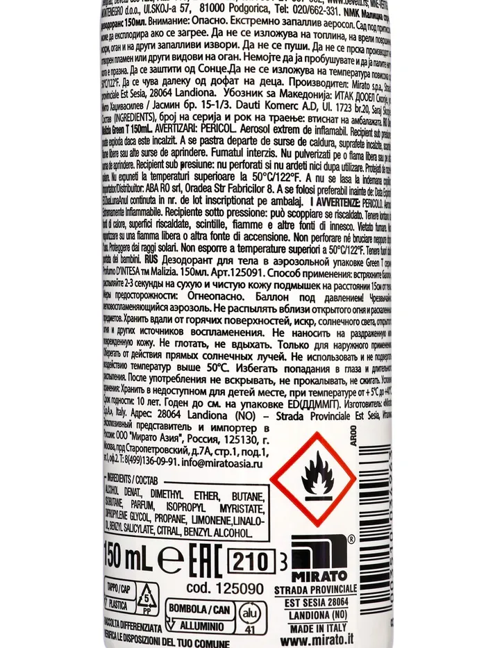 Аэрозольный дезодорант MALIZIA с экстрактом зеленого чая сочетает надежную 48-часовую защиту с бережным уходом за кожей. Уникальная рецептура: