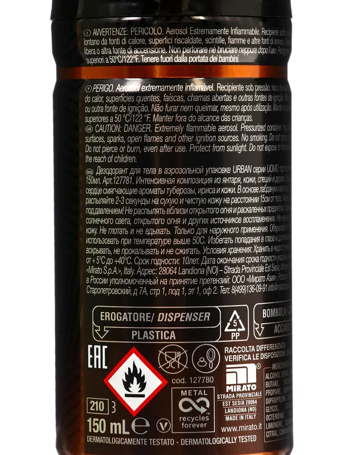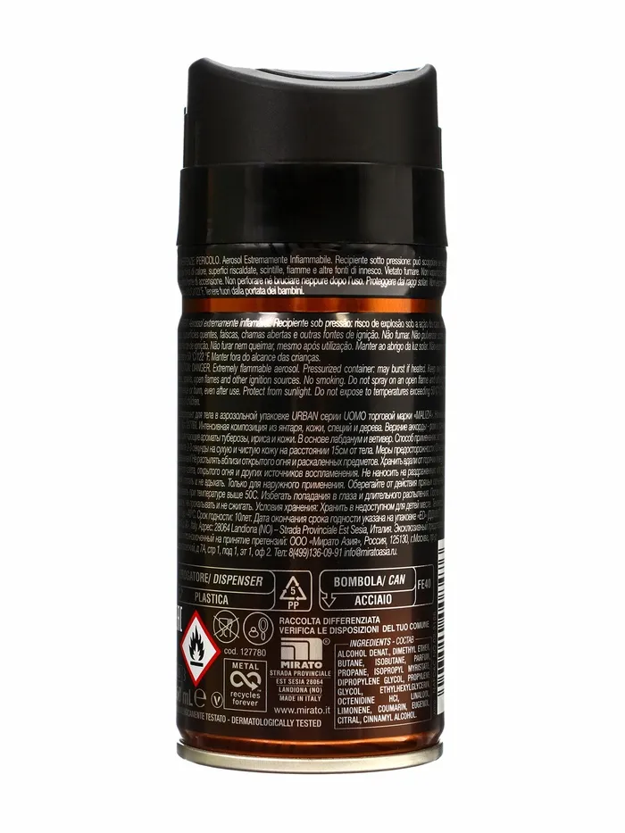Дезодорант-аэрозоль MALIZIA URBAN создан для тех, кто ценит надежность и комфорт в условиях городского ритма. Формула с усиленной защитой обеспечивает свежесть в течение всего дня, нейтрализуя запах пота и предотвращая его появление.