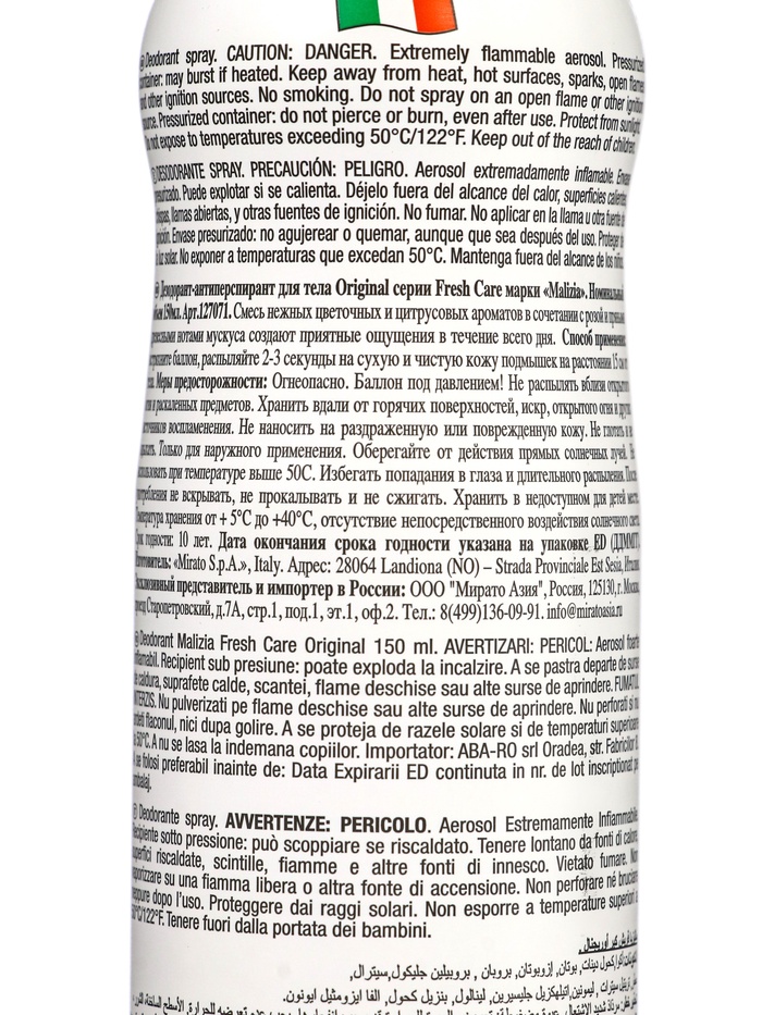 Дезодорант-антиперспирант MALIZIA Fresh Care Original, 150 мл — Характеристики