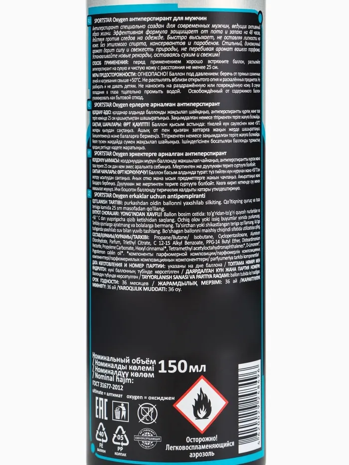 Дезодорант-антиперспирант мужской SPORT STAR Oxygen, 150 мл — Характеристики