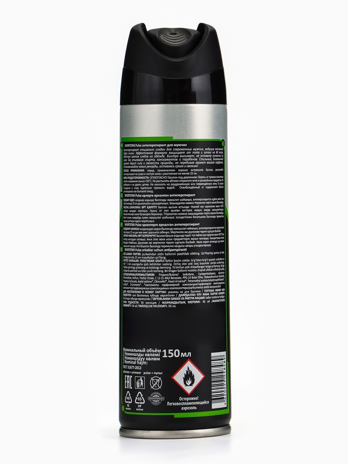 Способ применения: перед применением хорошо встряхните баллон, распыляйте антиперспирант на сухую и чистую кожу с расстояния не менее 25см.