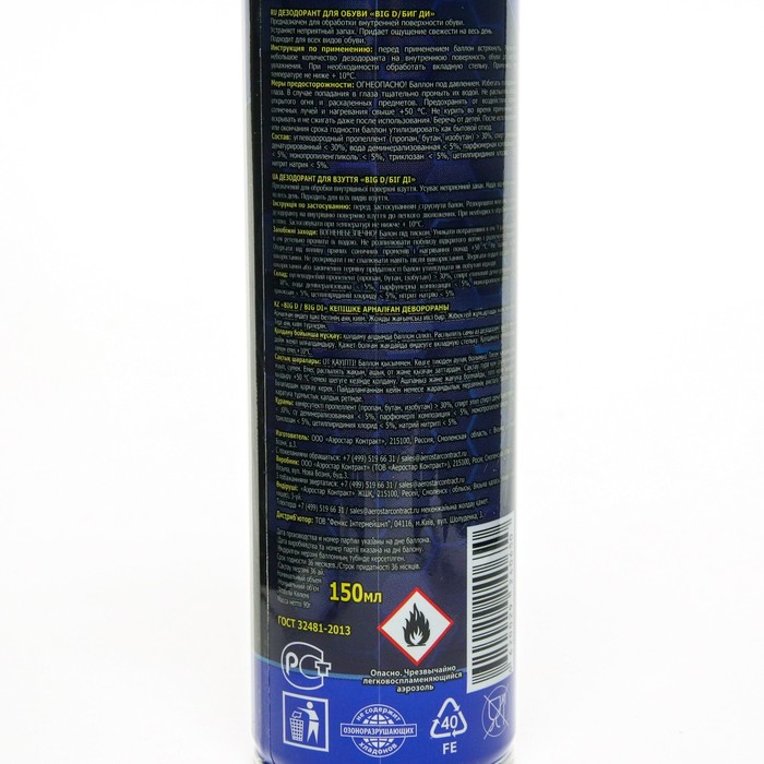 Дезодорант для обуви в аэрозольной упаковке Big D, 150 мл — Характеристики