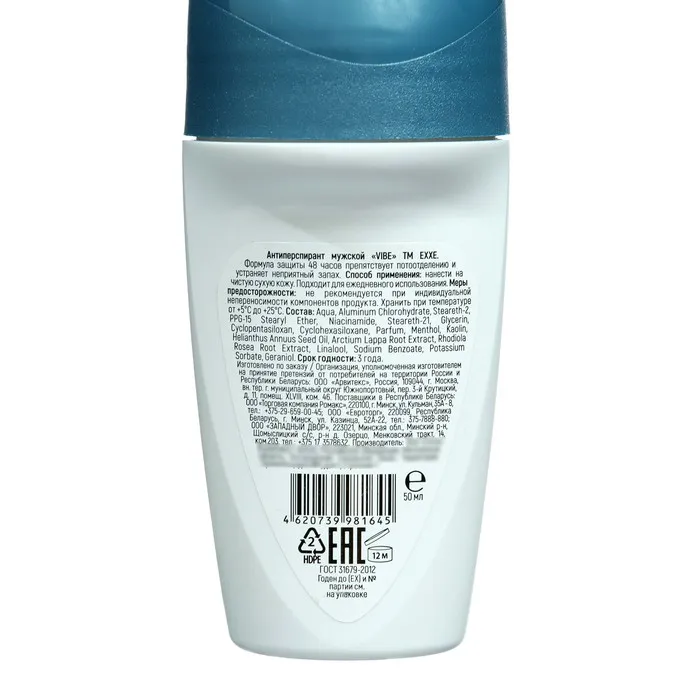 Дезодорант мужской роликовый EXXE VIBE, 50 мл — Характеристики