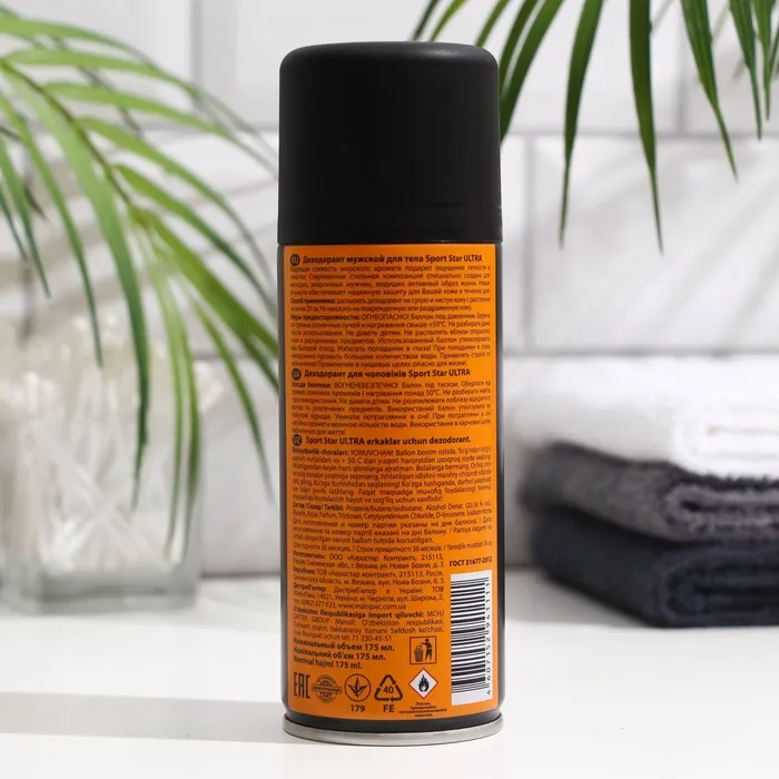 Новая формула мужского дезодоранта обеспечивает надежную защиту от пота и запаха, эффективно борется с бактериями и сохраняет свежесть в течение всего дня. Мужской дезодорант спрей SportStar успешно справится со своей задачей даже в экстремальных условиях - при повышенных физических нагрузках, высоких температурах, стрессе.