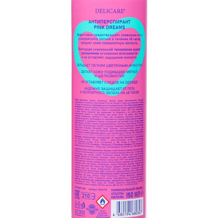 Дезодорант-антиперспирант Delicare обладает солнечным ярким ароматом для позитивного заряда на весь день. Улучшенная формула разработана специально для защиты от потоотделения. Равномерно наносится и быстро сохнет, а также не оставляет следов на одежде.