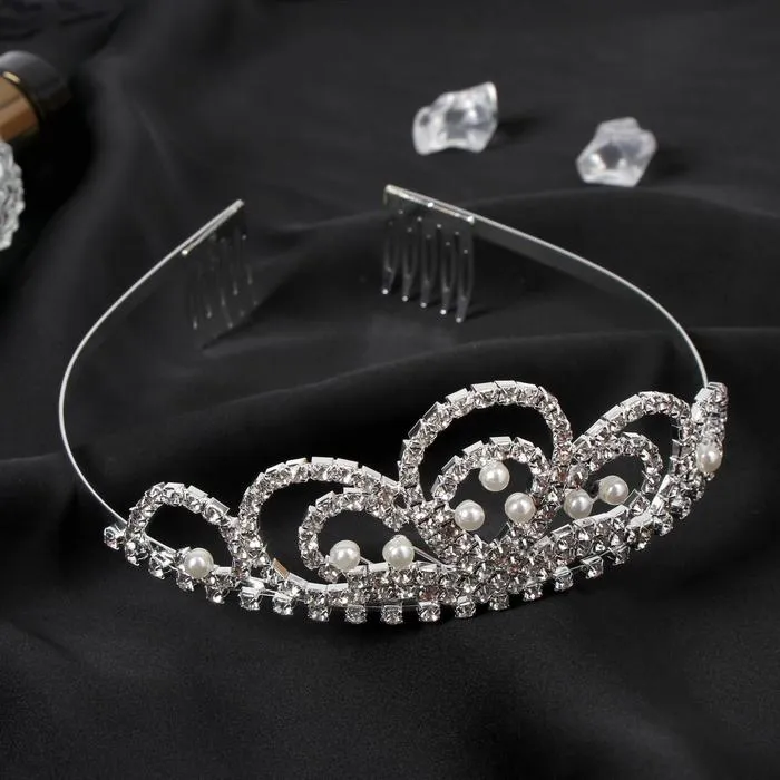 Диадема для волос «Аделина», капельки жемчуг, 5 см, серебро — Характеристики