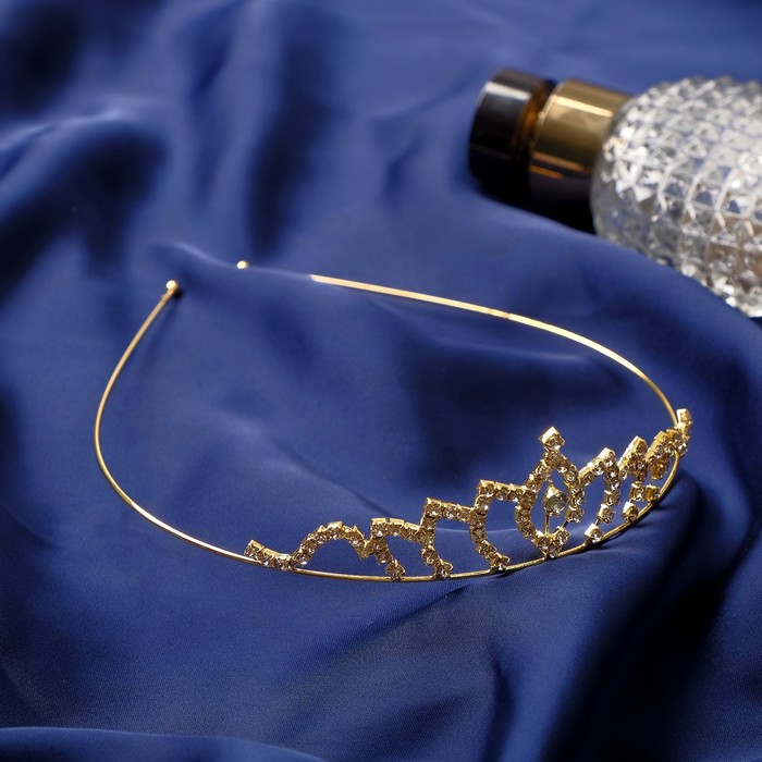 - Элегантный дизайн: Яркий золотистый оттенок и изысканные элементы делают диадему настоящим произведением искусства. Она прекрасно дополняет вечерние прически, добавляя блеска и утонченности.