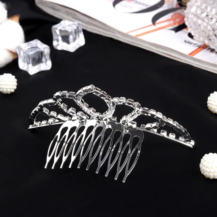 Высокое качество материалов: используемый в изделии металл покрыт серебряным напылением, что обеспечивает долговечность и стойкость к износу. Стеклянные элементы добавляют изделию блеска и шика, привлекая взгляды окружающих. Переливающийся светом аксессуар подойдет к разнообразным нарядам и стилям – от классических до современных.