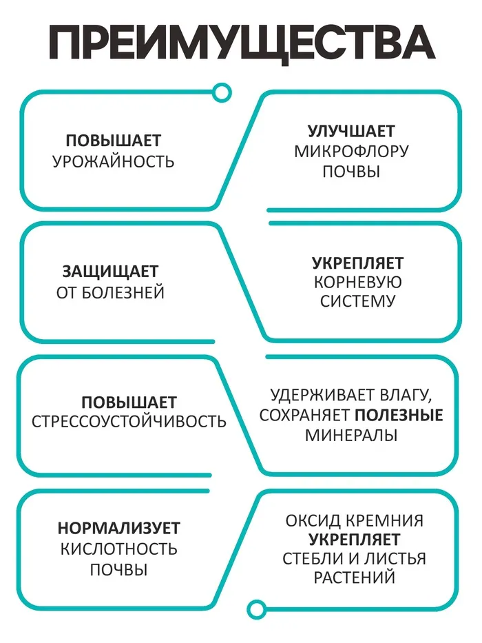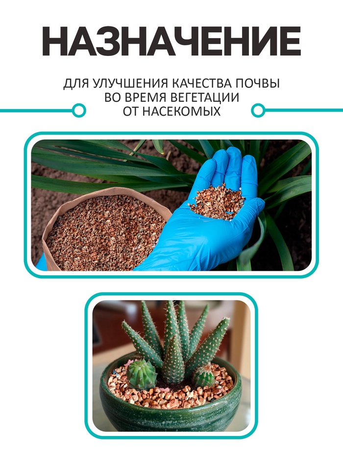 Применение: для повышения качества почвы нужно посыпать равномерно поверхность, расход 150-200 г на м2. Для защиты от насекомых насыпать у основания растения, в места обитания и передвижения насекомых. Хранить отдельно от пищевых продуктов и медикаментов, в местах недоступных для детей и домашних животных.