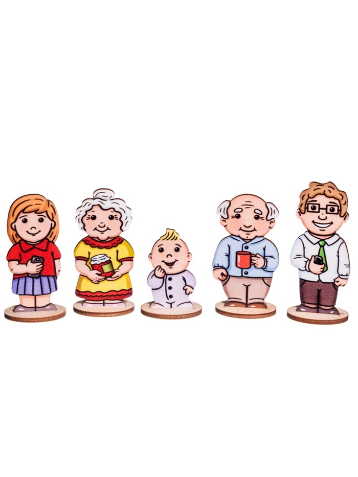 С этими фигурками ребёнок не просто играет — он учится говорить, думать и чувствовать. Расставляя персонажей, он тренирует память («Кто был рядом с дедушкой?»), внимание («Найди всех детей»), логику («Если это папа, то кто его сын?») и речь («Расскажи, что делает мама»). Через сюжетные игры формируются представления о заботе, уважении и семейных ролях — без наставлений, через действие и воображение. Фигурки становятся героями спектаклей, участниками «семейного фотоальбома» или ветвями «генеалогического древа», помогая ребёнку освоить сложные связи в простой, игровой форме.