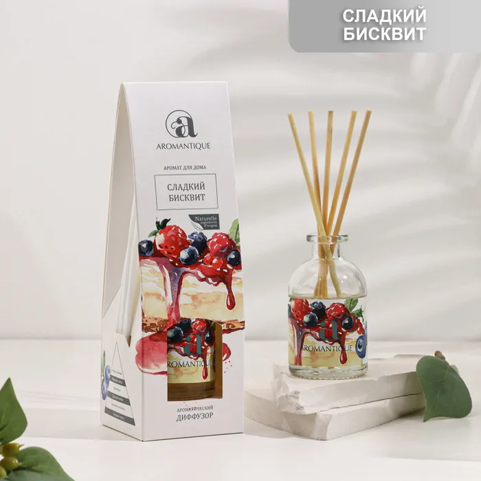 Создайте атмосферу уюта и тепла в вашем доме! Ароматический диффузор «Сладкий бисквит» (50 мл) – это прекрасный выбор для тех, кто хочет наполнить помещение сладким, домашним ароматом. Этот диффузор не только освежает воздух, но и создает приятную, расслабляющую атмосферу.